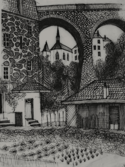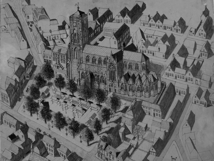 Zijn unieke handschrift manifesteert zich vooral in zijn vogelvluchttekeningen.